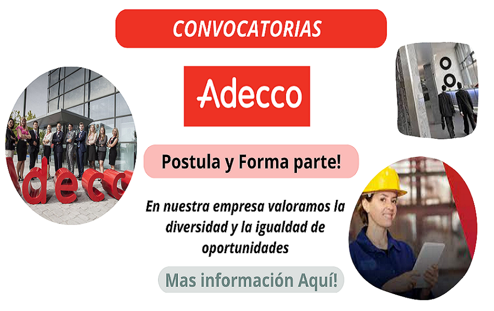 ¡Únete a Adecco y da un impulso a tu carrera profesional hoy mismo! Descubre un mundo de oportunidades laborales y crecimiento personal en una de las empresas líderes en reclutamiento y selección. ¡No pierdas la oportunidad de formar parte de nuestro equipo y alcanzar tus metas profesionales junto a nosotros!