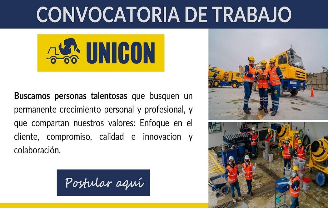 ¡Únete al equipo de UNICON! Estamos en busca de talentos apasionados para impulsar la innovación en la industria de la construcción. Si tienes experiencia y estás listo para crecer profesionalmente, ¡postula ahora y sé parte de nuestra misión!